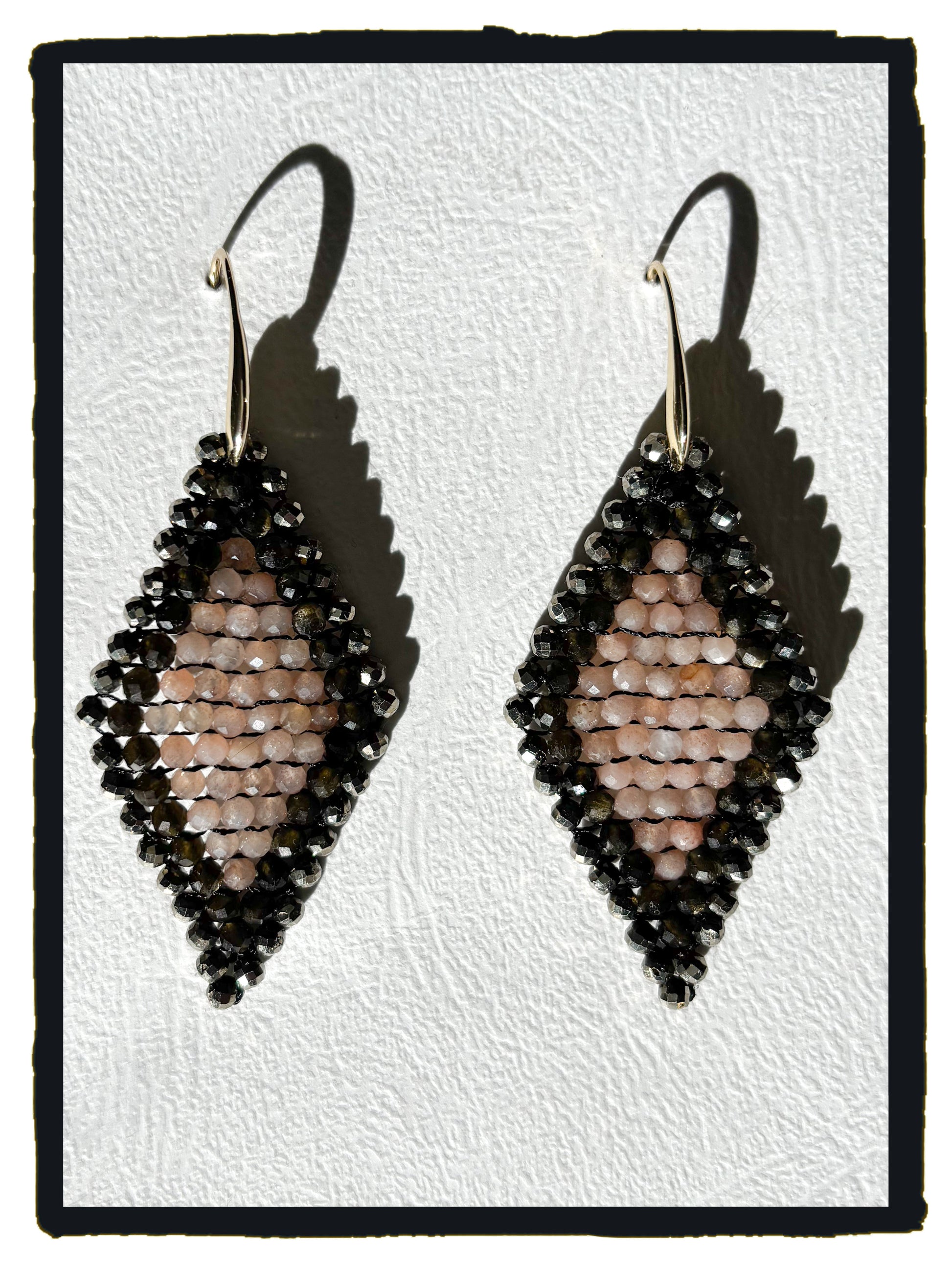 Pendientes DIAMOND piedra sol, cuarzo ahumado y pirita