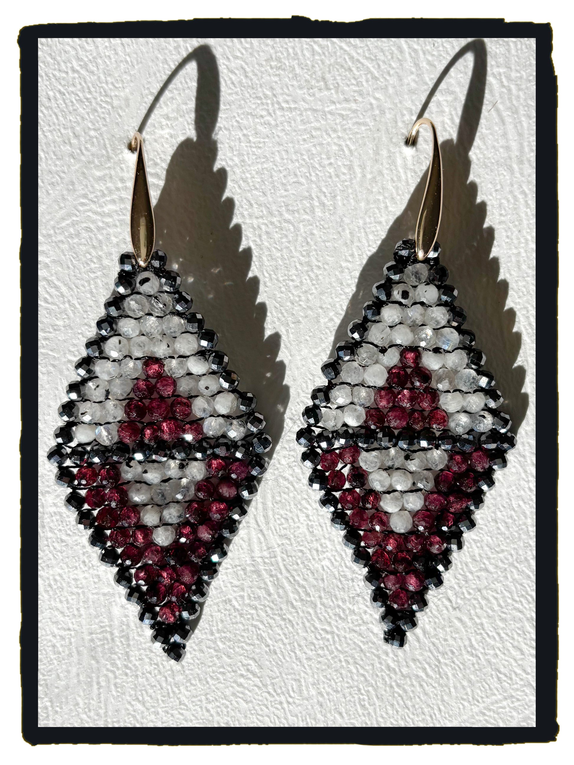 Pendientes 4 TRIANGLES granates, piedra luna y terahercio