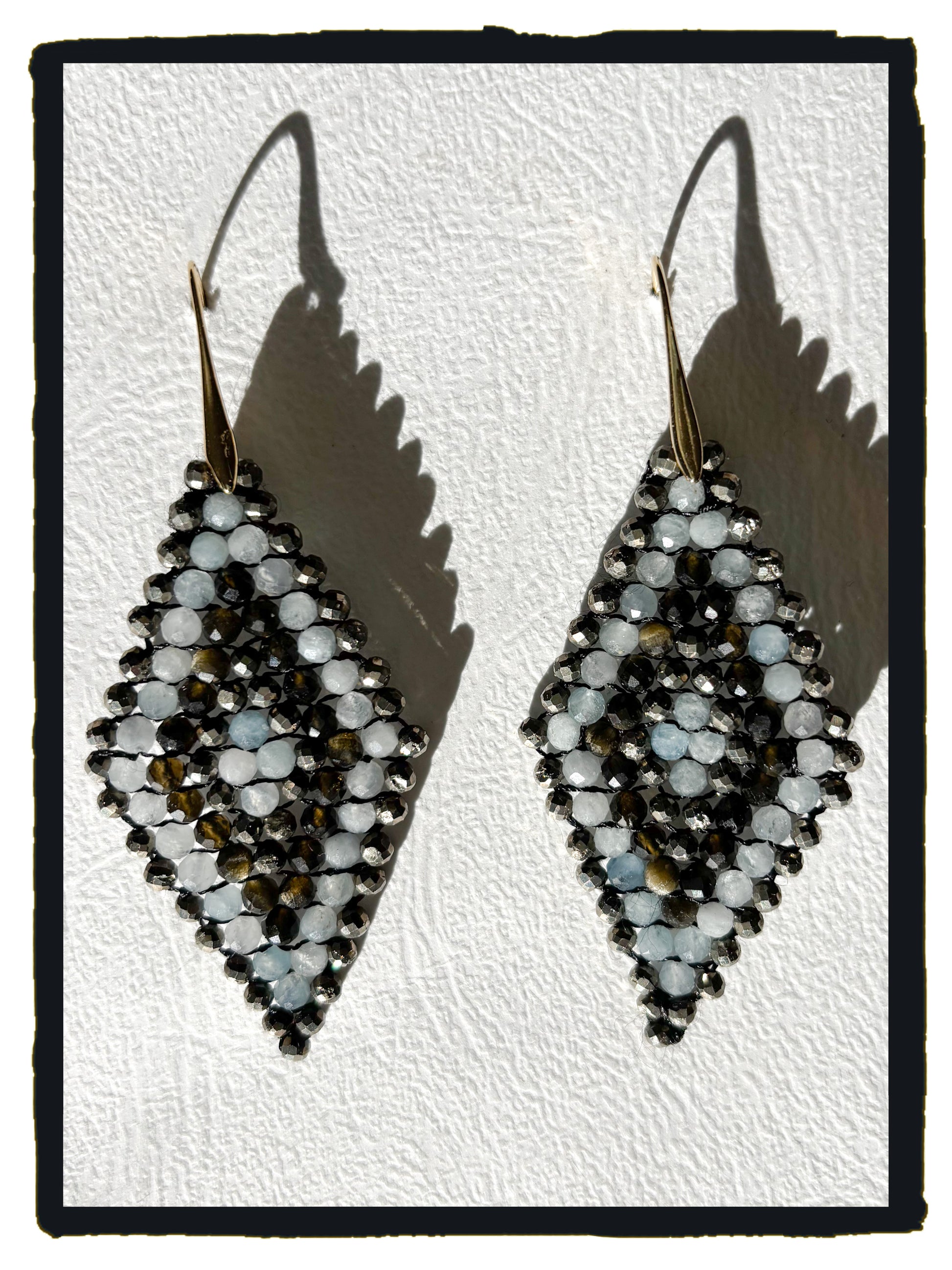 Pendientes STRIPY DIAMOND aguamarina y pirita
