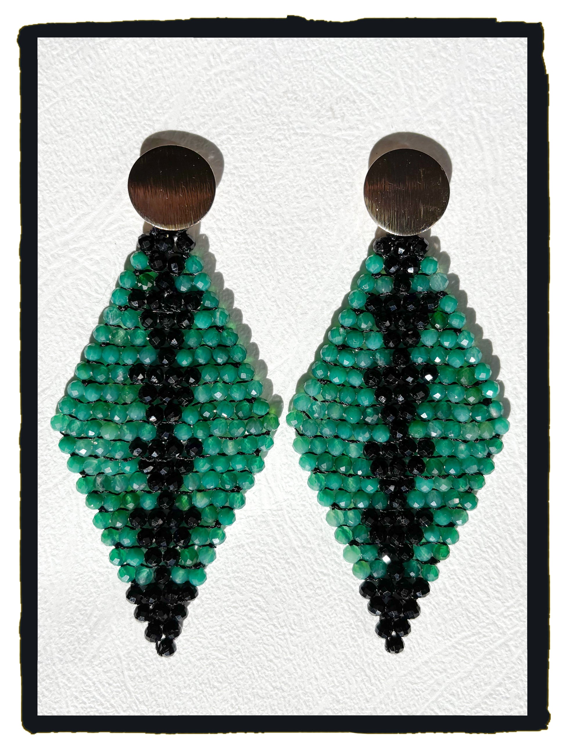 Pendientes TRIANGLES ROW gemstones turmalina y ágatas verdes